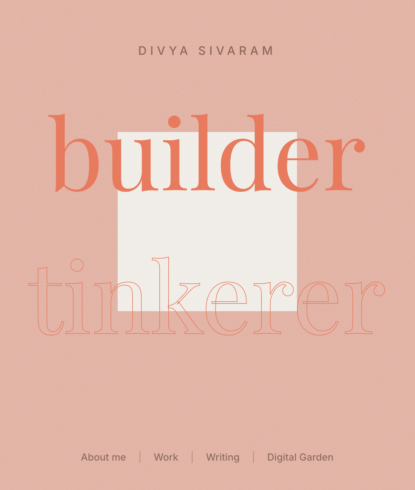 It felt good to spend time on Pinterest, picking colour theme, font and all that (I picked coral/peach monochrome). It’s not fully done yet, very much a work in progress. Some of the copies are AI generated, I needed something to get started. And the mobile version is not good, yet. Presenting my little internet space - https://divyashivaram.in